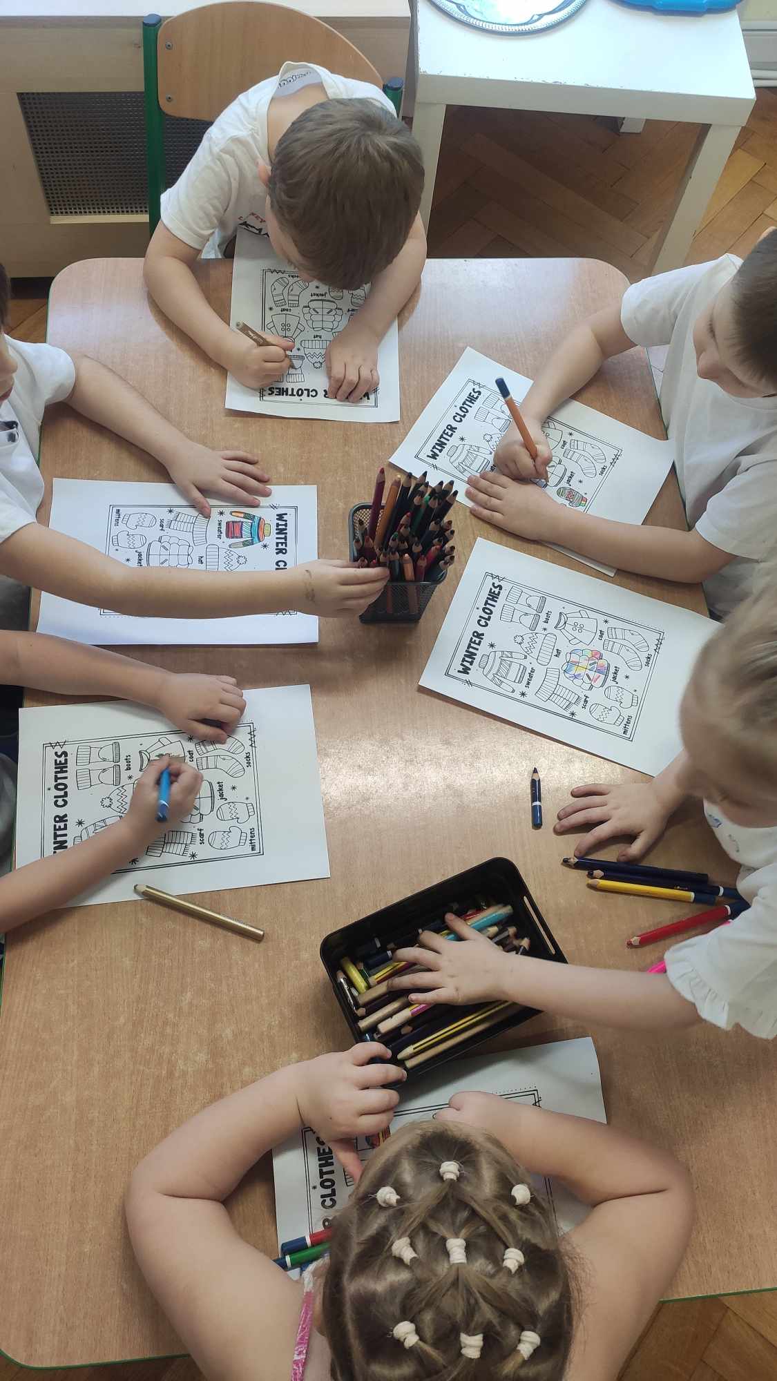 -dopasowywały flashcards z ubraniami do pory roku (autumn?, winter),