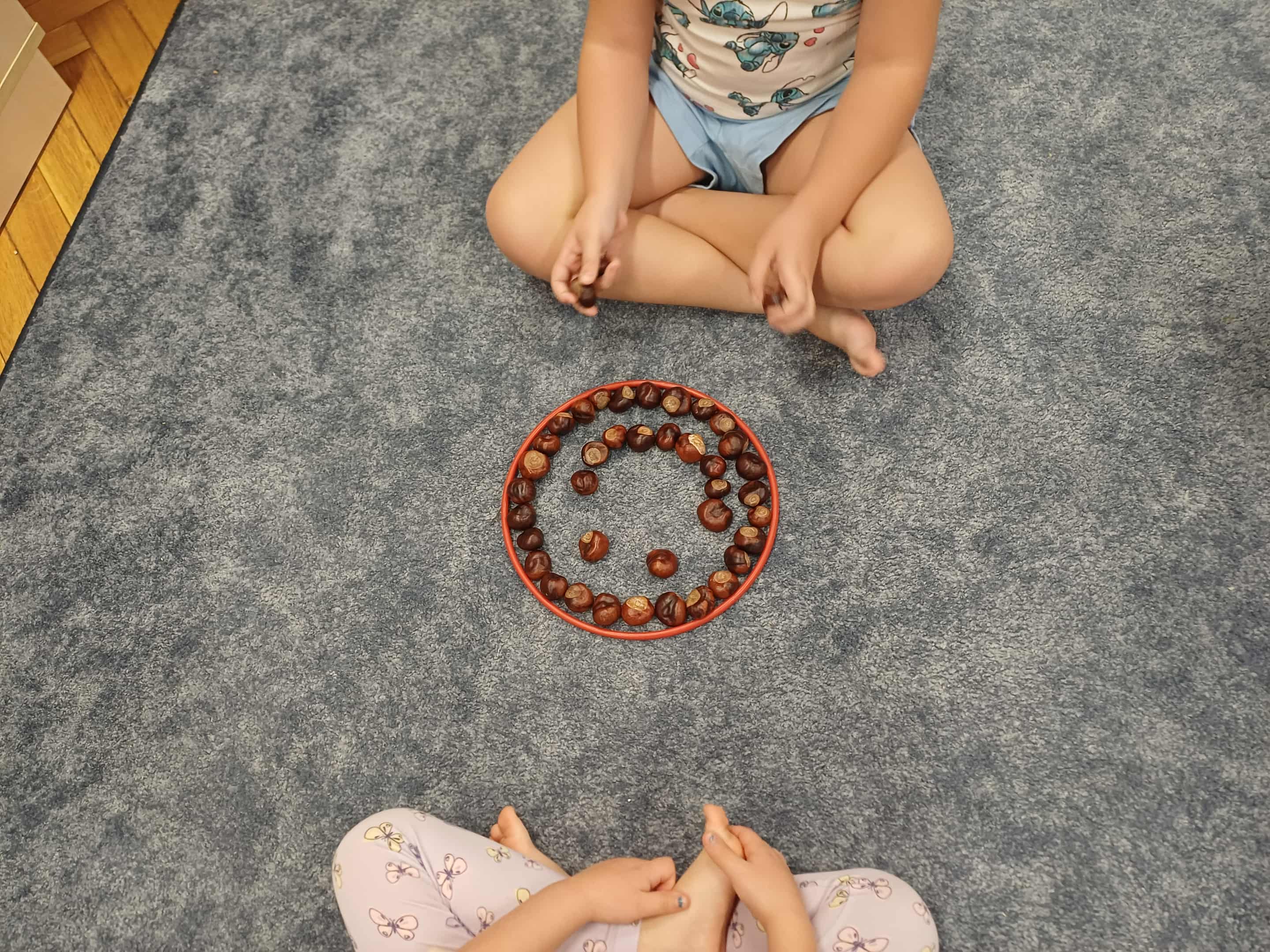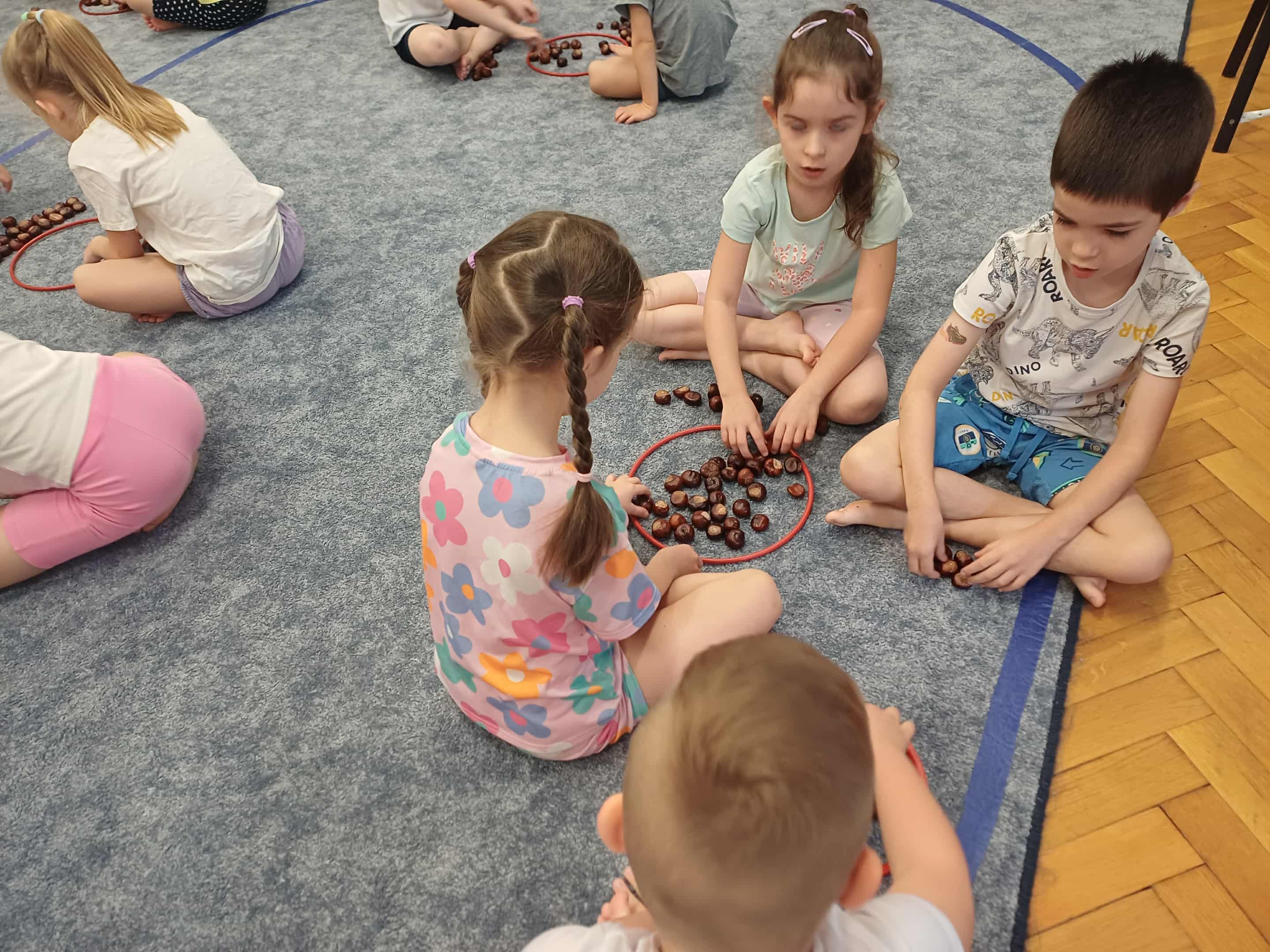 W grupie IV każdy dzień, to okazja do rozwoju. Tym razem skorzystaliśmy z owoców jesieni, które przez ostatnie tygodnie gromadziliśmy w naszej klasie. Mowa tu o kasztanach. Zadaniem dzieci była praca w parach. Dzięki temu, że w każdy poniedziałek w naszej grupie ustalane są pary zadaniowe, nie było problemu z doborem w pary.