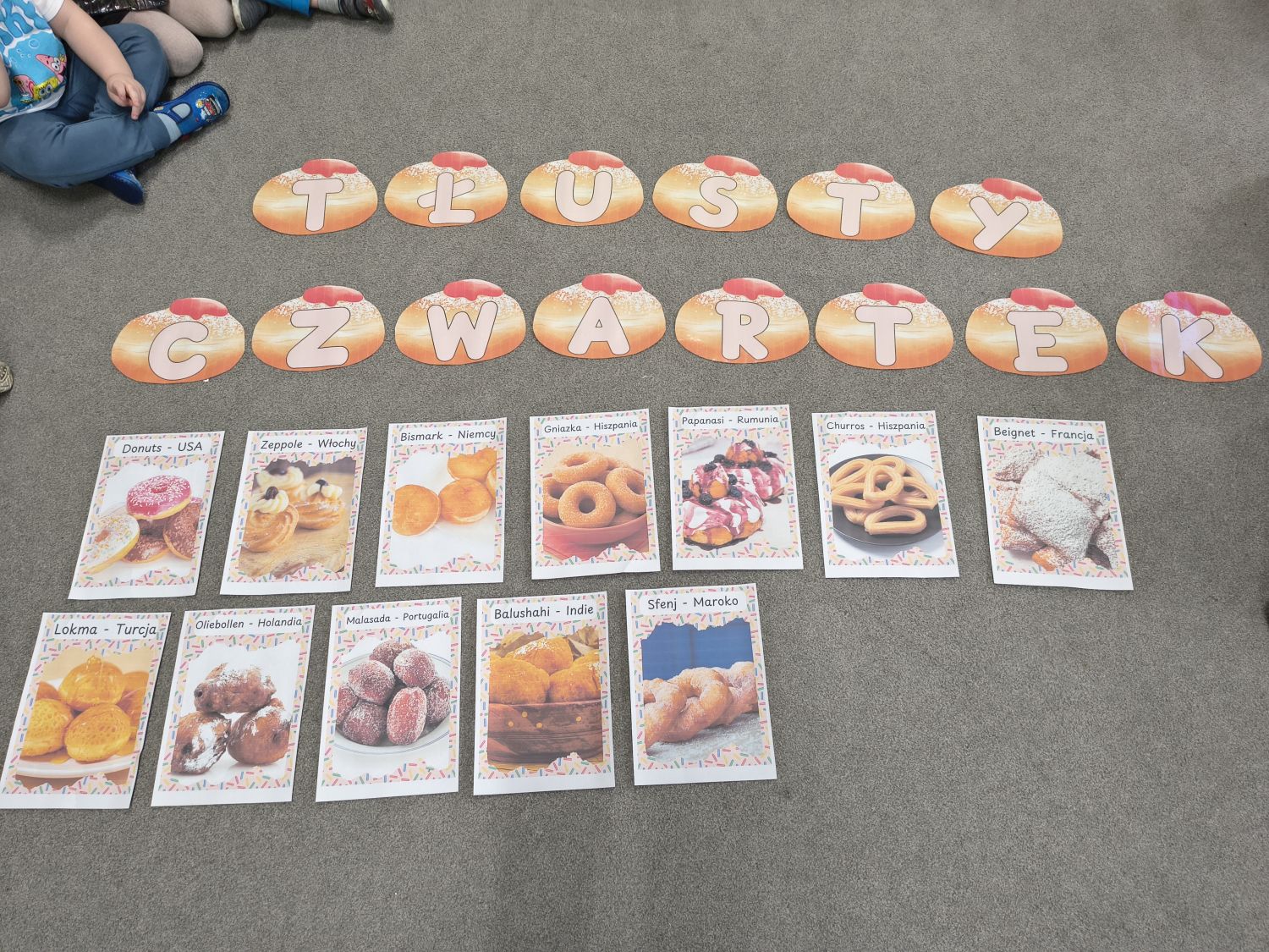 Dziś naprawdę było wyjątkowo słodko i radośnie! W ramach zajęć dzieci miały okazję poznać tradycje związane z Tłustym Czwartkiem. Przedszkolaki zobaczyły na zdjęciach jak wyglądają pączki w różnych krajach na świecie. Wykonały prace plastyczne - kolorowały obrazki przedstawiające pączki, jak również układały i przyklejały na kartce puzzle. Dzieci uczestniczyły w zabawie muzycznej z chustą animacyjną „Pączek z chusty”, która sprawiła im wiele radości. Ponadto z uśmiechem zajadały pyszne pączki.