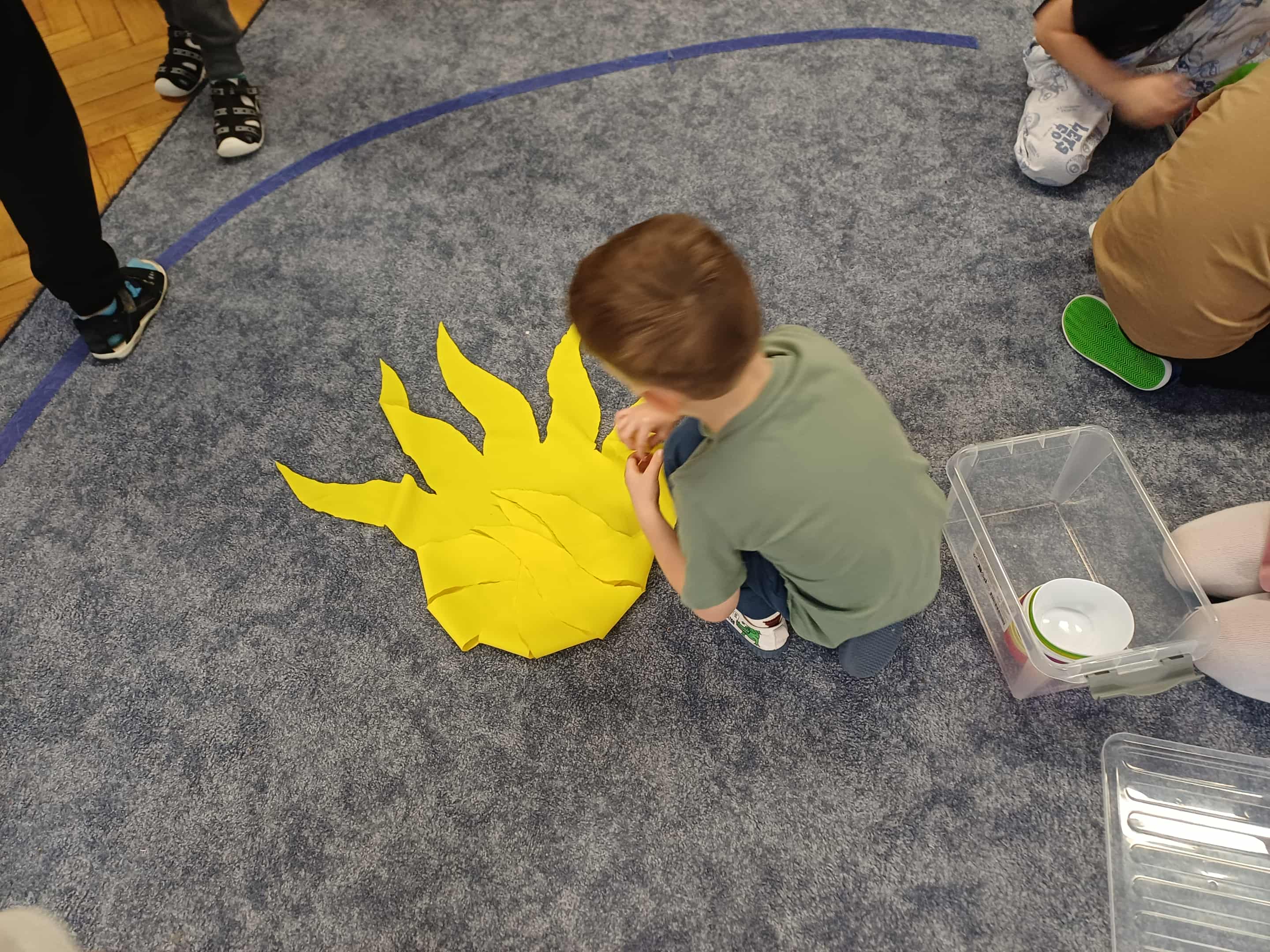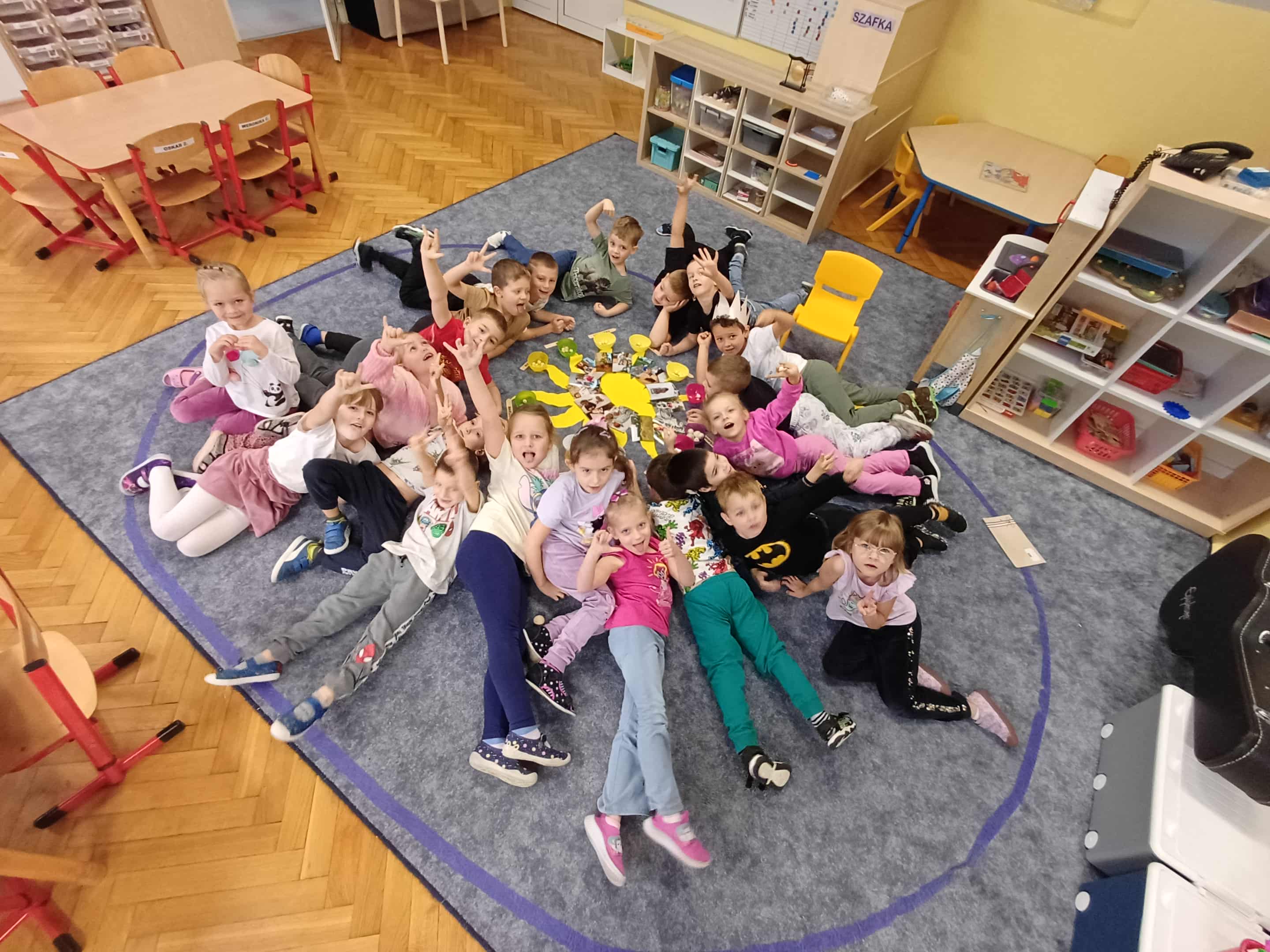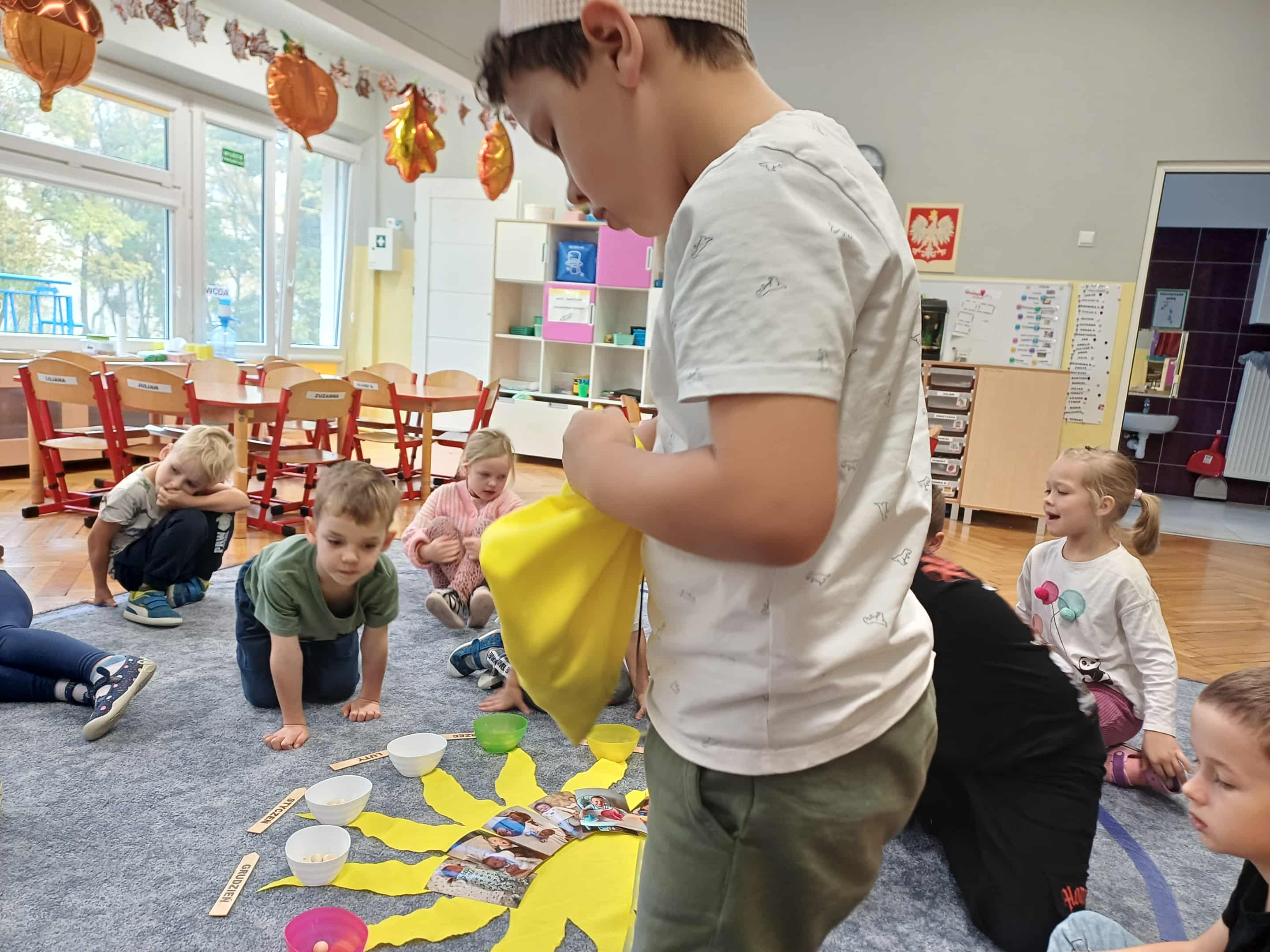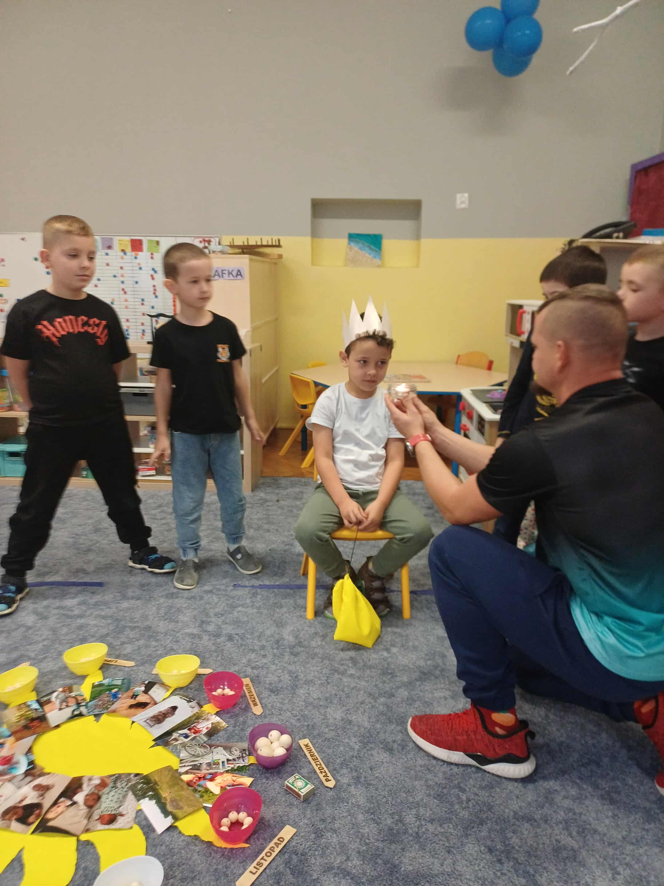 Opowieść o początkach młodego człowieka jest ułatwiana dzięki podpisanym z tyłu zdjęciom. Opowiadamy o tym, co dziecko w wieku roku, dwóch lat, trzech lat, czterech lat, pięciu lat i sześciu lat potrafi. Dzieci dzielą się z kolegami informacjami, co już potrafili w danym wieku. Zwracamy uwagę zawsze na to, że na każde dziecko momenty rozwojowe mogą przychodzić w różnym czasie, wszystko zależne jest od gotowości do danego etapu. Towarzyszą temu także zdjęcia przekazywane w grupie po elipsie. Na koniec następuje symboliczne zdmuchnięcie świeczki i piosenka wiwat. Od tych urodzin wprowadziliśmy także symboliczne podrzucanie jubilata tyle razy, ile lat kończy (cały ciężar spoczywa na nauczycielu, a dzieci dokładają swoje ręce i wspólnie liczymy podrzuty). Na koniec tradycyjne zdjęcie dookoła słoneczka i do aktywności.