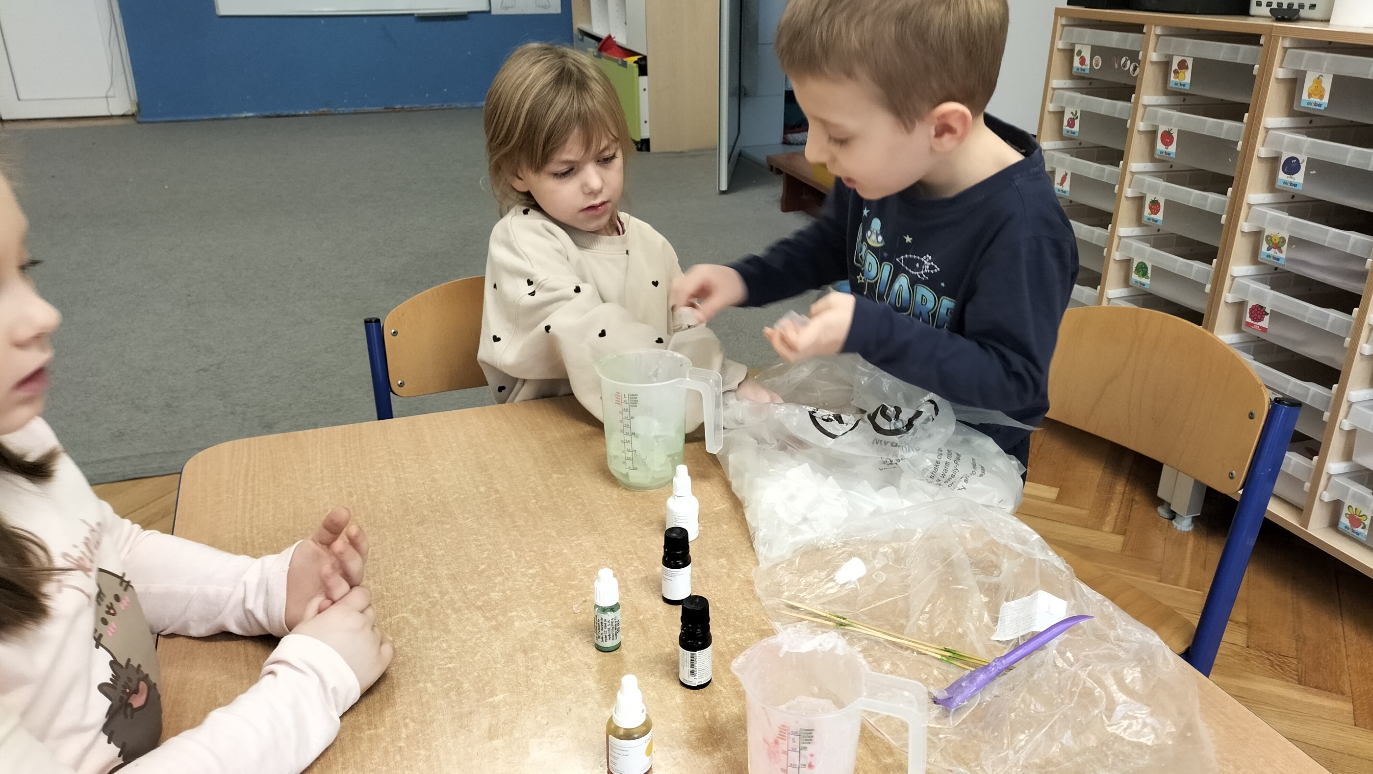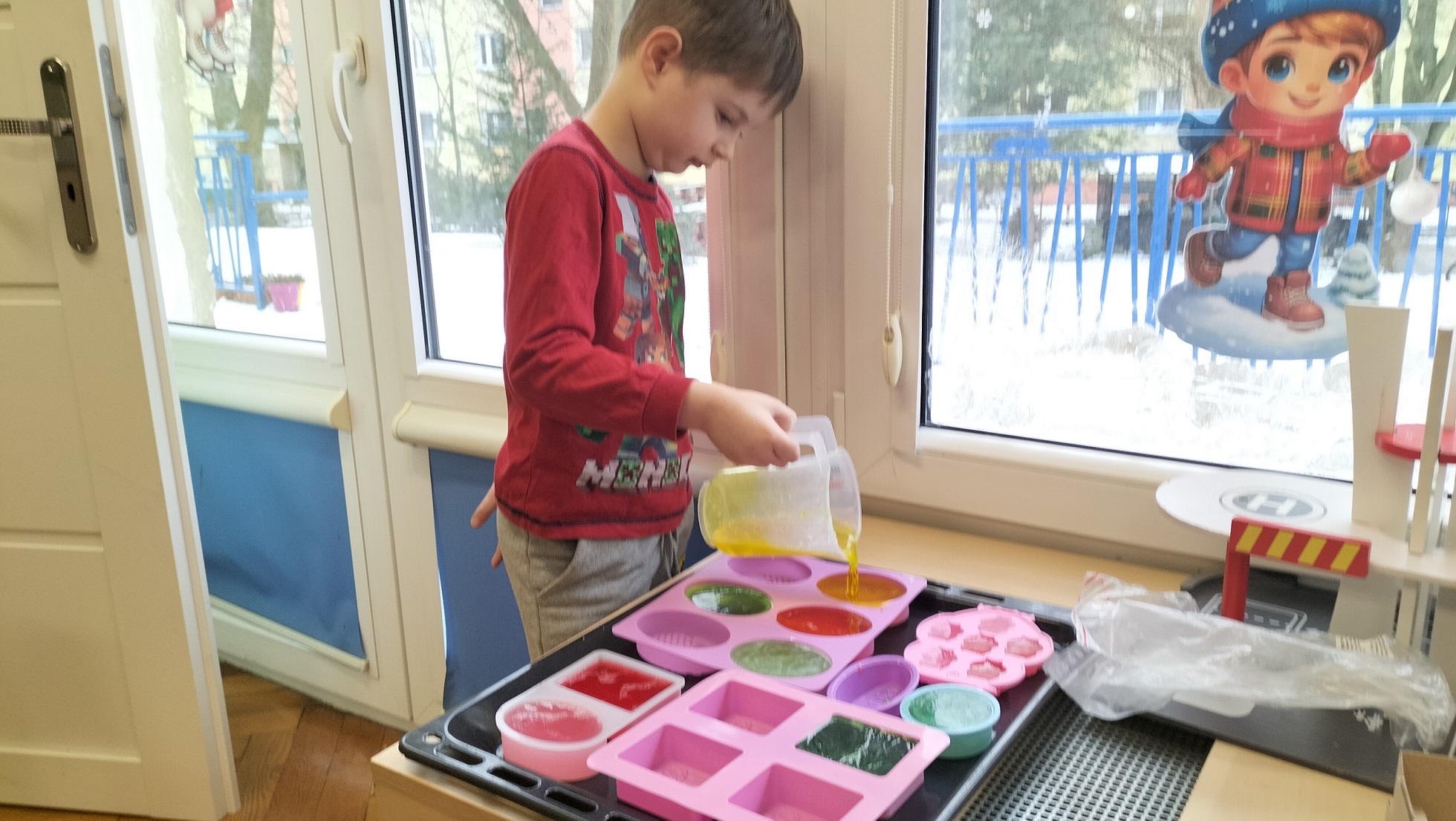 Wielką atrakcja dla naszych dzieciaków był udział w warsztatach mydlarskich. Dzieci miały możliwość samodzielnego skomponowania zapachu i koloru mydełka co sprawiło im wielką frajde.