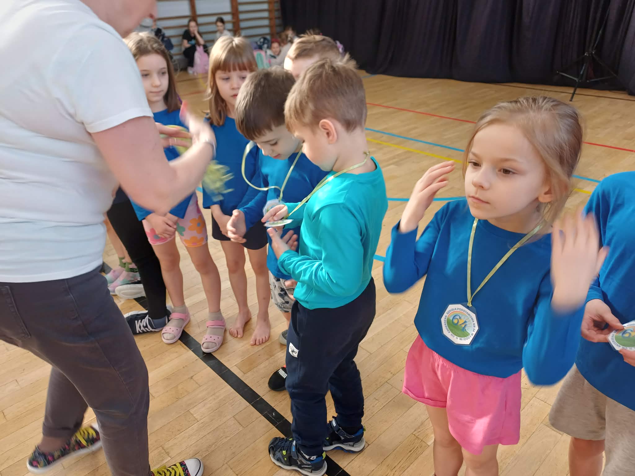 Grupa starszaków z Przedszkola Miejskiego nr 117 w Łodzi została zaproszona na zawody sportowe do Szkoły Podstawowej nr 64 w Łodzi. Dzieci były bardzo podekscytowane ogromem sali gimnastycznej oraz mnóstwem przygotowanych atrakcji dla dzieci. Zabawa i sportowa rywalizacja dawały dzieciom bardzo dużo radości. W tym dniu każdy uczestnik był zwycięzcą, bo wszyscy dobrze się bawili, a to w tym spotkaniu było najważniejsze.
