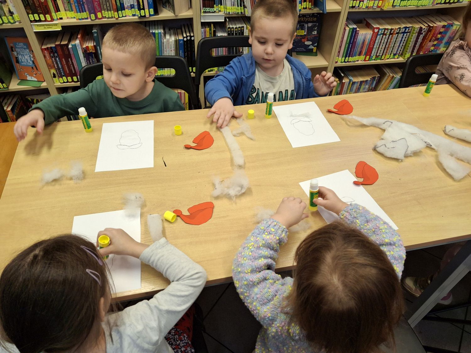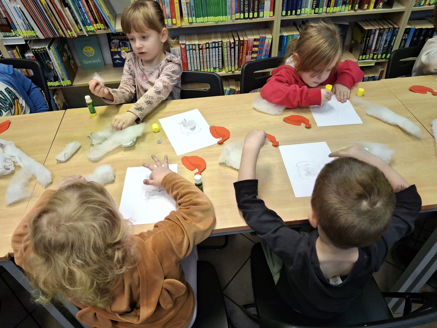 Dnia 9 grudnia dzieci z naszej grupy wybrały się do Biblioteki Miejskiej na zorganizowane zajęcia o tematyce Bożego Narodzenia. Pani bibliotekarka czytała bajkę oraz omówiła jej treść, a także ilustracje znajdujące się w ksiażce. Dzieci zostały wprowadzone w radosny, przedświąteczny nastrój i mogły wykonać kreatywną pracę plastyczną. Dziękujemy bardzo za możliwość udziału w zajęciach, z których przedszkolaki wyszły z uśmiechami na twarzach.