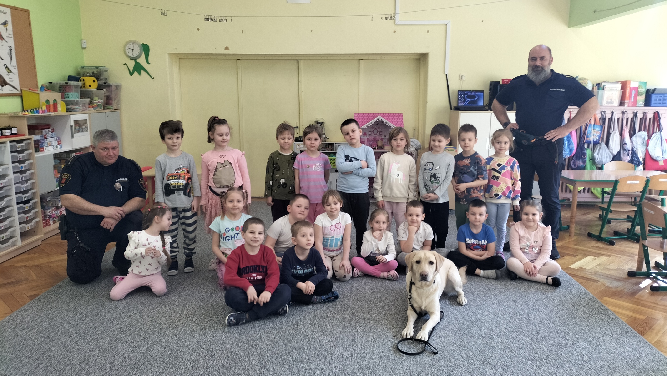 Dzieci w trakcie zajęć z funkcjonariuszami straży miejskiej poznały pracę psa służbowego. Funkcjonariusze zapoznały dzieci z zasadami bezpiecznego zachowania w stosunku do obcych psów. Poznały też sposób obronnego zachowania w razie ataku agresywnego psa.